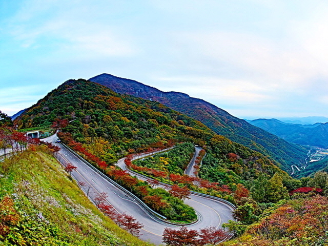 회남재 숲길(하동) = 악양골 최참판댁~청학선사~청학동 삼성궁으로 이어지는 740고지의 회남재 숲길 10km 구간을 걷노라면 숲속의 맑은 공기와 자연숲 향기에 취하고, 가을이면 파란 하늘과 붉은 단풍에 취하게 된다.