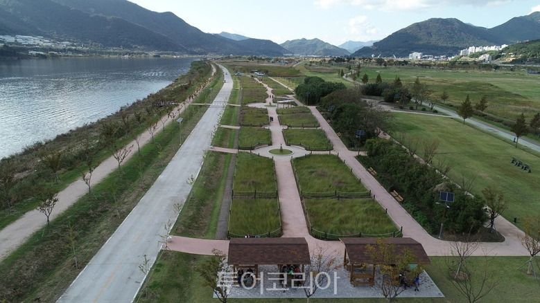 바래길7코스-화전별곡길(남해) = 이국적인 독일마을 광장을 지나 화천변을 따라 양떼목장으로 이어지는 화전별곡길은 아름다운 풍경이 끊임없이 이어지는 길이다. 양떼목장을 지나 내산저수지 옆 바람흔적미술관에 들러 예술작품과도 만날 수 있다.