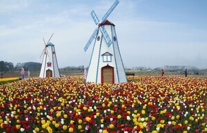 지금 이 시기에 이곳을 찾으면 튤립과 청보리가 동시에 절정을 이루는 장면을 볼 수 있다. 바람에 일렁이는 초록 청보리밭 사이로 형형색색 튤립이 조화를 이루고, 멀리 대형 풍차가 배경을 채우면서 네덜란드 어딘가를 연상케 하는 풍경이 완성된다.