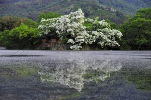수면 위로 점점이 떠 있는 5개의 섬 중 가장 큰 섬에는 조선시대 정자인 완재정(翫齋亭)이 세워져 있고, 그 주변을 수백 년 수령의 왕버들과 이팝나무가 빙 둘러싸고 있다. 4월 말이 되면 이팝나무 가지마다 쌀밥을 소복이 담아놓은 듯한 흰 꽃송이가 터지기 시작하면서, 섬 전체가 하얀 눈을 뒤집어쓴 것처럼 변해간다.