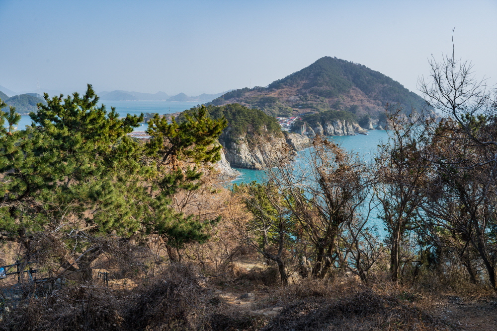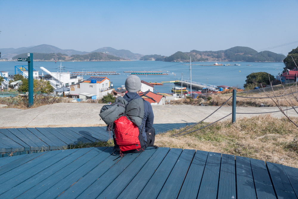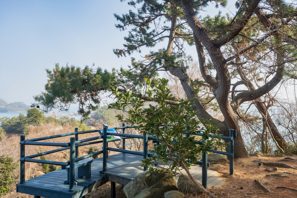 바람길 전망대는 마을 뒤편 능선 위에 놓여 있다. 맑고 푸른 통영 바다와 두미도, 노대도, 욕지도를 조망하기 위해 설치된 것이다. 반대편의 전망도 좋다. 마을과 만지항 그리고 학림도의 모습이 시원하게 내려다보인다.