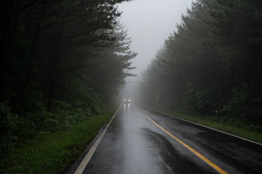 파릇하던 날씨가 서귀포 하례리를 지날 때쯤 급격히 어두워지기 시작했다. 순식간에 안개가 몰려와 길을 덮쳤다. 해발 400m, 한라산에 막혀 오도 가도 못 하게 된 구름이 중산간까지 하강한 것이다. 여행에도 징크스가 있다. 차귀도에 갈 때마다 구름이 끼고 바람이 불고, 이따금 비가 내렸던 기억이 있다. 차귀도의 징크스인 걸까.