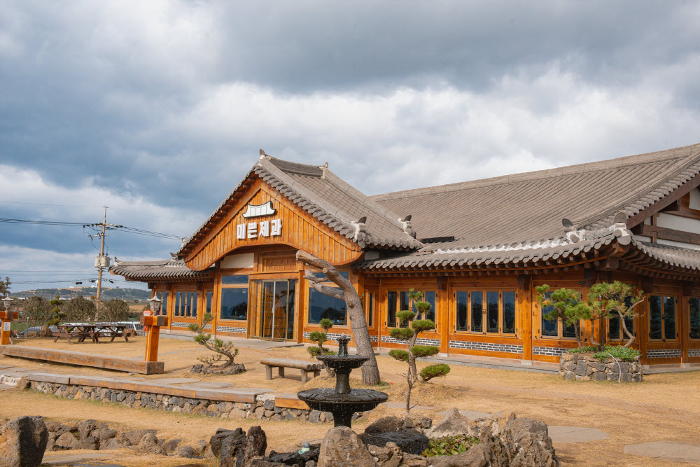 돌고래가 출몰한다는 신도리 해안가로 드라이브를 하다 보면 뜬금없는 한옥 건축물과 마주치게 된다. ‘믿음직스럽다’라는 뜻의 베이커리 카페, 미쁜제과다. 고풍스런 감성의 카페는 6,600여 평방미터의 대형 부지에 위치해 있고, 카페 내부만도 500㎡이나 된다. 나무와 연못 그리고 분수로 조성된 정원도 있다. 미쁜제과의 모든 빵은 유기농 밀가루를 자연 숙성해서 만든다. 천연 발효종 소금빵, 마약빵, 옛날 팥빵 등이 유명하지만, 카야 바게트나 앙버터의 맛도 상당히 ‘믿음직스럽다’.