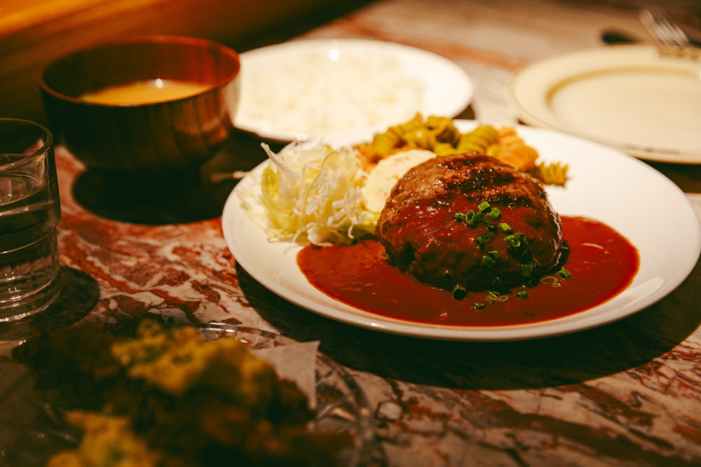 저녁에는 에비난반 튀김세트, 치킨난반(닭튀김+타르타르 소스), 망고크림 파인애플(디저트도 되고, 식사 중간에 입가심으로도 활용하기 좋은 사이드)과 함께 하이볼이나 맥주로 식사를 시작하고, 함박으로 마무리하는 나만의 경양식 코스도 즐길 수 있다.