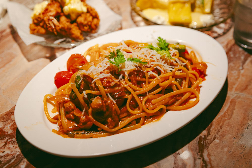 매콤함이 필요할 땐 토마토치킨파스타가 제격이다. 나폴리탄과 파스타 중간 지점에 있는 면 요리로, 매운맛과 신맛이 조화를 이룬 토마토소스로 맛을 냈다. 양식 느낌은 아니고 한식과 일식 사이에 있다. 참, 하우스 오브 신세계 식당 중에서도 꽤 인기가 많은 편이라 캐치테이블을 활용해 원격 줄서기를 신청하는 게 대기 시간을 줄이는 팁이다.