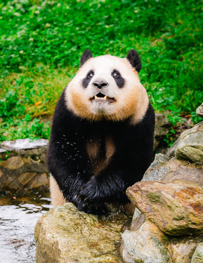 푸바오를 만났다. 한국에서 태어난 최초의 판다, 푸바오. 지난 4월, 우리와 이별한 뒤로 노심초사했는데 직접 보니 마음이 놓였다. 푸바오는 융단처럼 깔린 풀밭 위를 이리저리 뛰어다니며 재롱을 부리고 있었다. 푸바오, 안녕! 잘 있었어? 방사장에는 쉴 만한 나무 그늘도 있고, 첨벙첨벙 물놀이를 할 만한 작은 연못도 있었다. 일반인에게 공개된 지 열흘 정도 지난 시점이라 푸바오가 불편해하면 어쩌나 싶었는데, 잘 먹고 잘 노는 푸바오를 보니 안심이 됐다. 이곳은 중국 워룽 선수핑기지(臥龍神樹坪基地)다.
