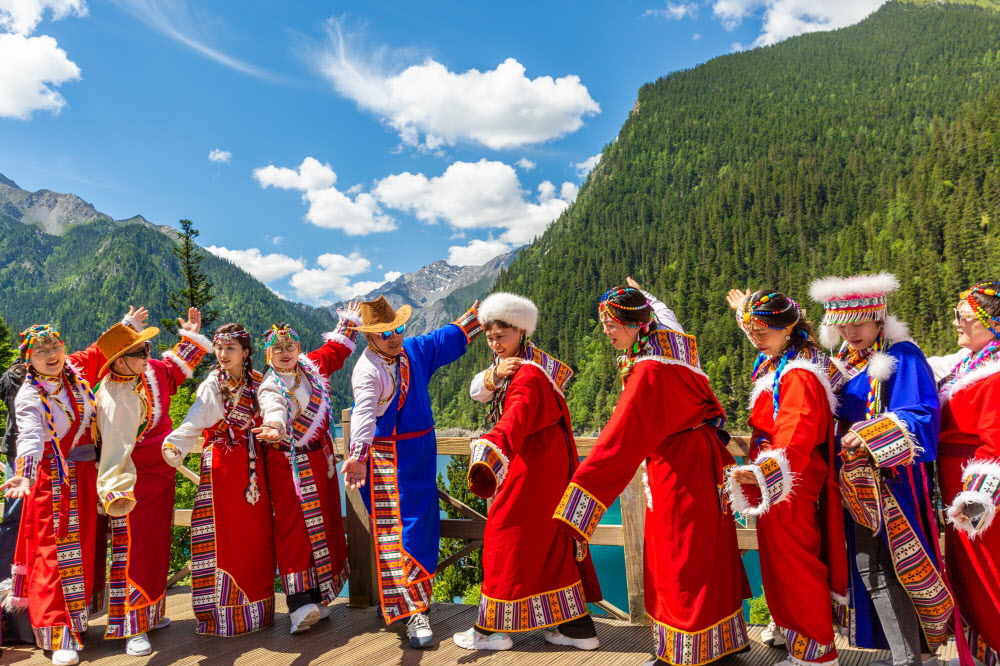구채구를 생각하면, 오묘한 빛깔의 호수가 먼저 떠오른다. 깊은 산 속에 있는 호수는 하늘과 짝을 이뤄 천상의 풍광을 안겨 준다. 구채구에서는 호수를 바다라고 표현한다. 그래서 경해, 오화해, 죽순해, 공작해 등 호수 이름 뒤에 ‘해(海)’가 붙는다. 호수마다 개성이 있었지만, 가장 마음에 남는 호수는 장해였다. 누군가는 몰디브 바다보다 색이 진하다 하고, 산세에 둘러싸인 풍광이 캐나다 레이크 루이스 같다고 했다. 한쪽에서는 옷을 갈아입고 머리를 매만지느라 정신이 없었다. 티베트 전통의상을 입고 사진을 찍기 위해서였다. 어수선한 분위기였지만, 드넓은 장해는 모든 모습을 다 안아 주는 기분이었다. 해발 3,100m에 수심이 40m에 달하는 장해. 웅장함과 섬세함에 반할 수밖에 없었다.