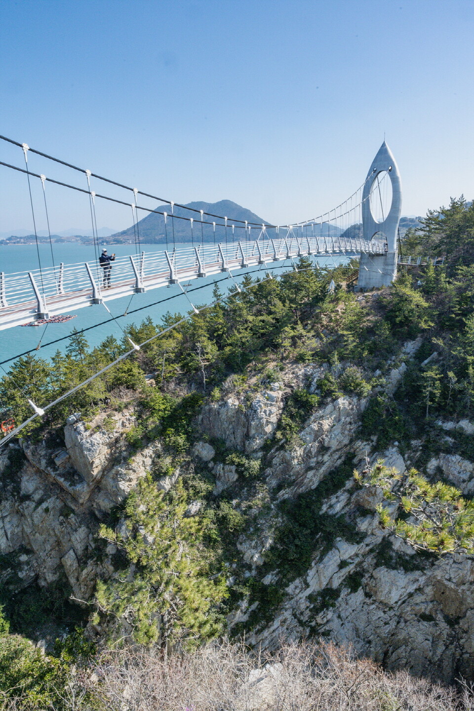 해안절벽 사이의 협곡에 설치된 길이 100m의 출렁다리로 2017년 개통되었다. 하화도 제1의 명소로 알려진 꽃섬다리는 그 모습 자체로도 아름답지만, 다리 중간 지점에서 보는 풍경도 환상적이다. 아찔한 절벽 아래 숨겨진 큰 굴과 바다 건너 상화도의 오롯한 자태를 감상할 수 있다.