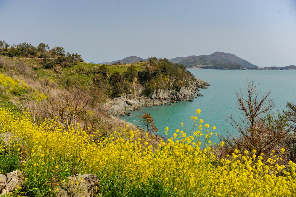 커피를 한잔 내려 마시고 꽃섬길로 나섰다. 다행히 진달래와 유채꽃이 반긴다. 큰산전망대에 오르니 개도와 금오도가 손에 닿을 듯 가깝다. 이럴 때마다 섬마다 쌓인 여행의 추억이 새삼스럽다. 생각해 보면 섬만큼 변함없는 여행지도 없는 듯하다. 조형물과 포토존 몇 군데가 생긴 것을 제외하면 하화도 역시 예나 지금이나 똑같다.