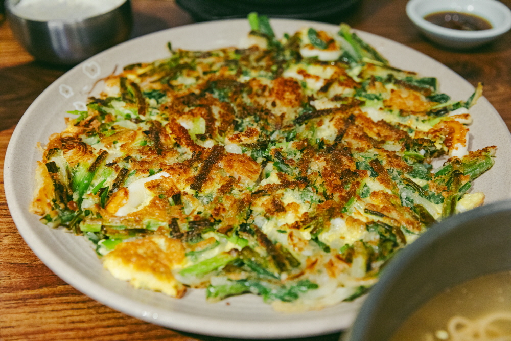 일단 전을 받아서 먹기 시작하면 막걸리 생각이 단숨에 든다. 설령 전만 먹겠다고 다짐했어도 말이다. 적당히 기름진 전은 바삭하면서도 재료들의 맛이 살아 있다. 술이 얼큰하게 취했을 땐 물메밀국수를 시키는 것도 괜찮다. 평양냉면 스타일은 아니고 새콤달콤한 고깃집 냉면과 닮아있기 때문이다. 화요나 일품진로 등 주류 가격이 여타 다른 강남 식당이나 이자카야 등과 비교해 합리적인 것도 장점이다.