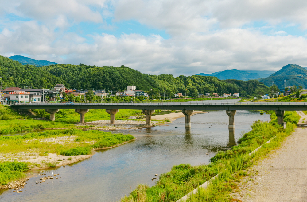진부면 오대산에서 발원해 남쪽으로 흐르는 하천이 ‘오대천’이다. 진부면에 활기와 생명을 불어넣는 물줄기인 셈이다. 진부면 재래시장이 있는 하진부리까지도 오대천의 흐름은 이어진다. 여행자에게는 편안한 쉼을 선사하는 천변이다.