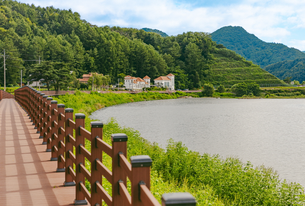 물줄기를 따라 걸으면서 진부면의 소소한 일상에 스며들고, 평화로운 풍경을 감상하는 것만으로도 여행이 된다. 오대천과 함께 하진부교, 사남산 등이 어우러진 모습은 마치 여름을 형상화한 것 같다. 또 오대천을 곁에 두고 걸을 수 있는 데크길과 산책로가 잘 조성돼 있다.