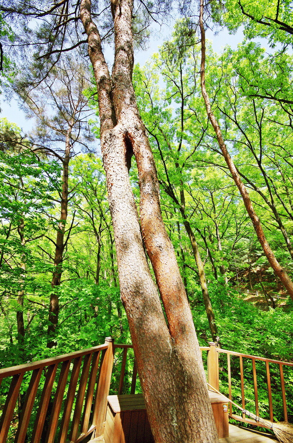 가지가 갈라졌다 다시 만나 자라는 '만남의 소나무' |