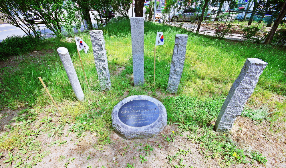 일제강점기 3.1독립만세운동의 흔적은 남주동소공원에도 남아있다. 청주시 상당구 남주동 637-2, 남주동 소공원에 가면 일제강점기 청주에서 일어났던 3.1독립만세운동을 기념하기 위해 만든 조형물과 푯돌을 볼 수 있다. 푯돌에는 ‘1919년 민중들 만세소리 드높던 옛 쇠전거리 이 자리에 시민들의 뜻을 모아 이 표지석을 세운다’라는 문구가 새겨졌다.