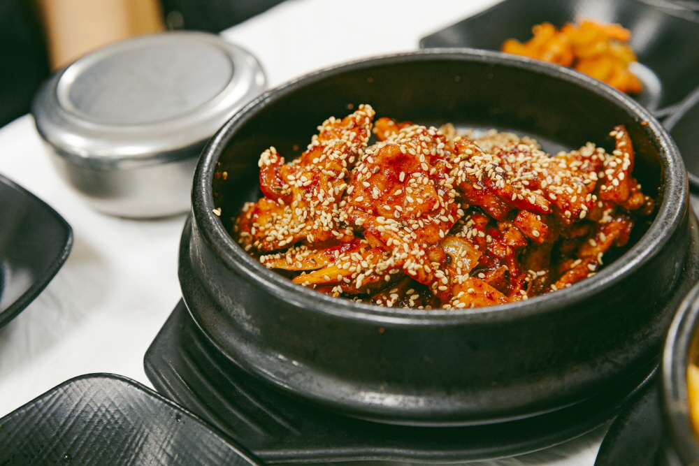 주 요리인 뚝배기 주물럭과 찌개의 곁을 지키는 반찬 수가 많고, 개별 반찬의 맛도 준수하다. 고등어조림과 잡채, 두부조림 등 면면도 화려해 과식하게 된다. 싱싱한 채소는 덤이다. 뚝배기에 가득 담긴 주물럭은 돼지고기의 고소함과 양념의 감칠맛이 조화를 이룬 최고의 밥 친구다. 밥이든, 쌈이든 어떻게 먹어도 맛있다. 주사위 모양으로 썬 두부가 듬뿍 들어간 된장찌개(월~목요일)도 매력 포인트. 금~토요일에는 김치찌개가 제공되니 최소 두 번은 방문하게 된다.