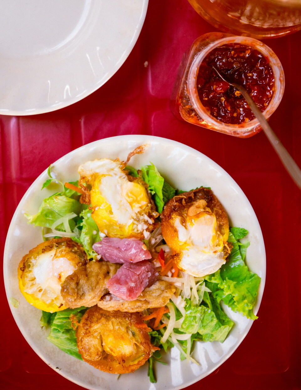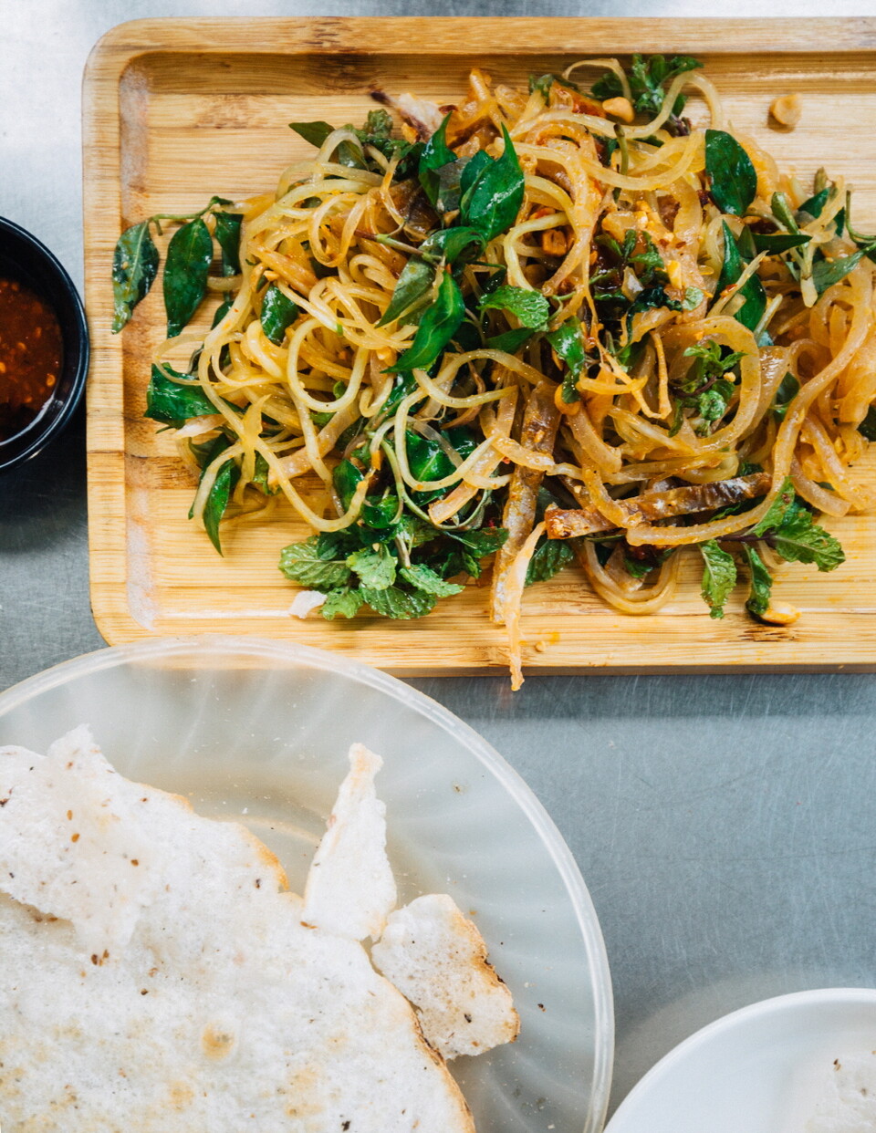 ‘꾸안 히엡(Quan Hiep)’은 호이안의 가맥집이다. 가맥집은 ‘가게 맥줏집’의 줄임말로 작은 슈퍼에서 간단한 안주와 맥주 한 잔을 즐길 수 있는 곳을 뜻한다. 꾸안 히엡에서는 주로 마른안주를 취급하는데, 이걸로 샐러드를 만들어 내어준다. ‘꾸이 두 두(Goi du du) 그린 파파야 샐러드’. 잘게 썬 파파야, 민트, 라우람(Rau Ram)과 건어물을 느억맘 소스에 버무린다.