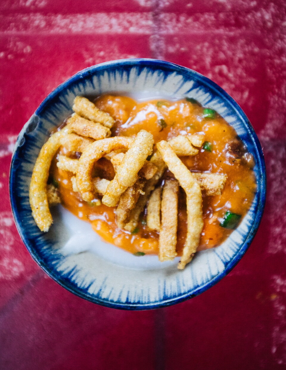 사실 반깐은 완벽한 ‘호이안’의 음식은 아니다. 베트남 남부에 위치한 ‘붕따우(Vung Tau)’ 지역의 ‘반콧(Banh Khot)’에서 유래되었다. 반콧은 쌀가루 반죽 위에 새우와 오징어 같은 해산물을 얹어 튀겨내는 음식이다. 반콧이든 반깐이든, 튀겼으니 뭔들.