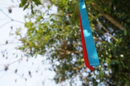 푸른 바다를 닮은 파란색 리본과 일본 신사의 토리이(문)를 상징하는 다홍색 리본을 한데 묶었다. 멀리서도 눈에 잘 띄도록 주로 전봇대와 나뭇가지에 매달아 놓았다.