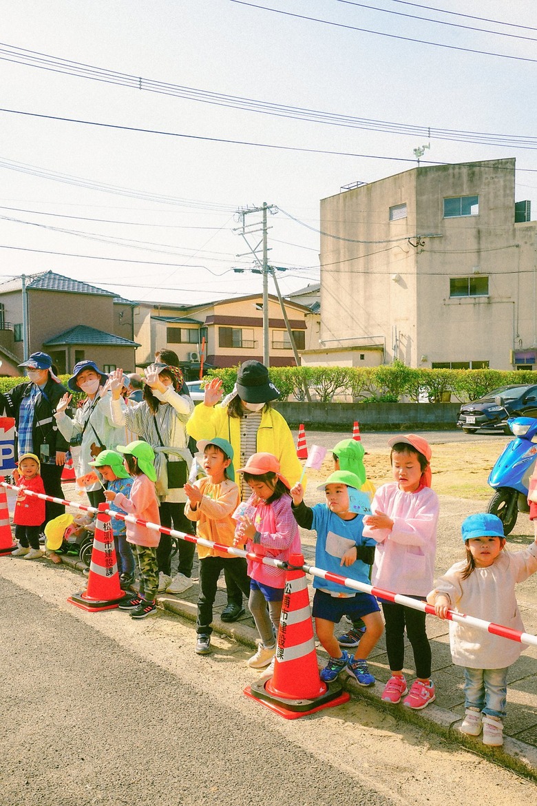 마쓰우라 아이들이 올레꾼들을 응원하고 있다 |