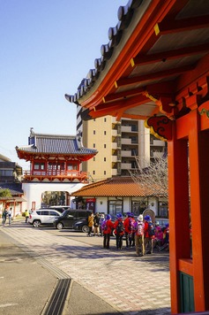다케오 코스는 2012년 개장한 첫 규슈올레 코스이자 인기 코스다. 규슈올레의 최고참인 셈인데, 다케오온천역이 시작점이라 교통이 편리하고 도심과 자연을 수차례 넘나드는 변화무쌍한 재미가 있다. 차들이 달리는 대로변을 지나 옹기종기 가정집이 자리한 골목을 누비다 자연을 맞닥뜨렸다. 숲속을 걷다 만난 기묘지절에서는 올레꾼들에게 따뜻한 차 한 잔과 간식을 내어줬다. 코로나 전과 변함없는 따뜻한 인사가, 단절됐던 시간을 무색하게 했다.