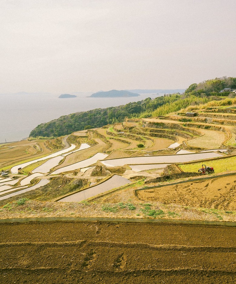 약 10km의 여정 끝에 하이라이트인 도야 다랑이 논에 도착했다. 매년 모내기철(4월 중순~5월 초순)이면 물이 찬 계단식 논에 석양이 비쳐 황홀한 붉은빛을 선사한다. 걸어 보니 알겠다. 이 아름다움을 전하기 위해 얼마나 많은 고민과 노력이 필요한지.Doya Rice Terraces