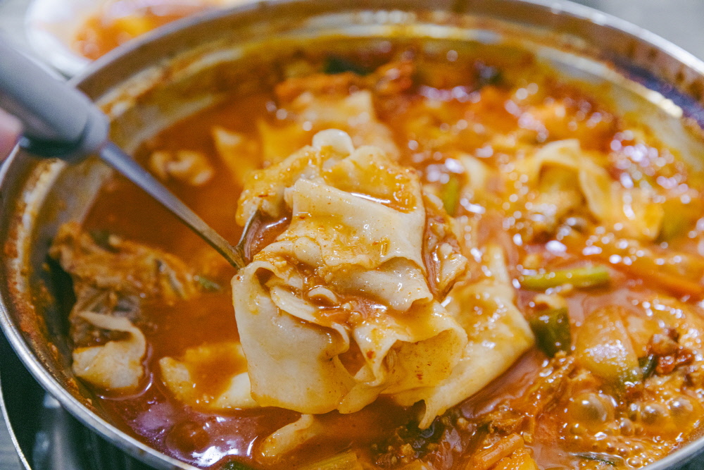 부드럽고 잡내 없이 잘 삶은 닭고기와 만두, 떡, 감자 등의 재료를 더한다. 여기에 입맛 돋우는 양념장이 포인트다. 보글보글 끓여 양념이 적당하게 졸아들면 먹어야 할 타이밍이다. 마무리는 선택지가 3~4개다. 볶음밥, 칼국수, 라면이다. 그렇지만 가장 추천하는 건 부드러운 질감의 손수제비. 양념과 잘 어울리는 데다가 씹는 맛도 있다.