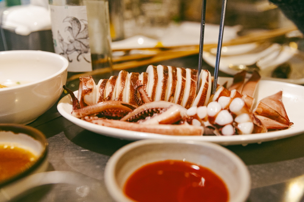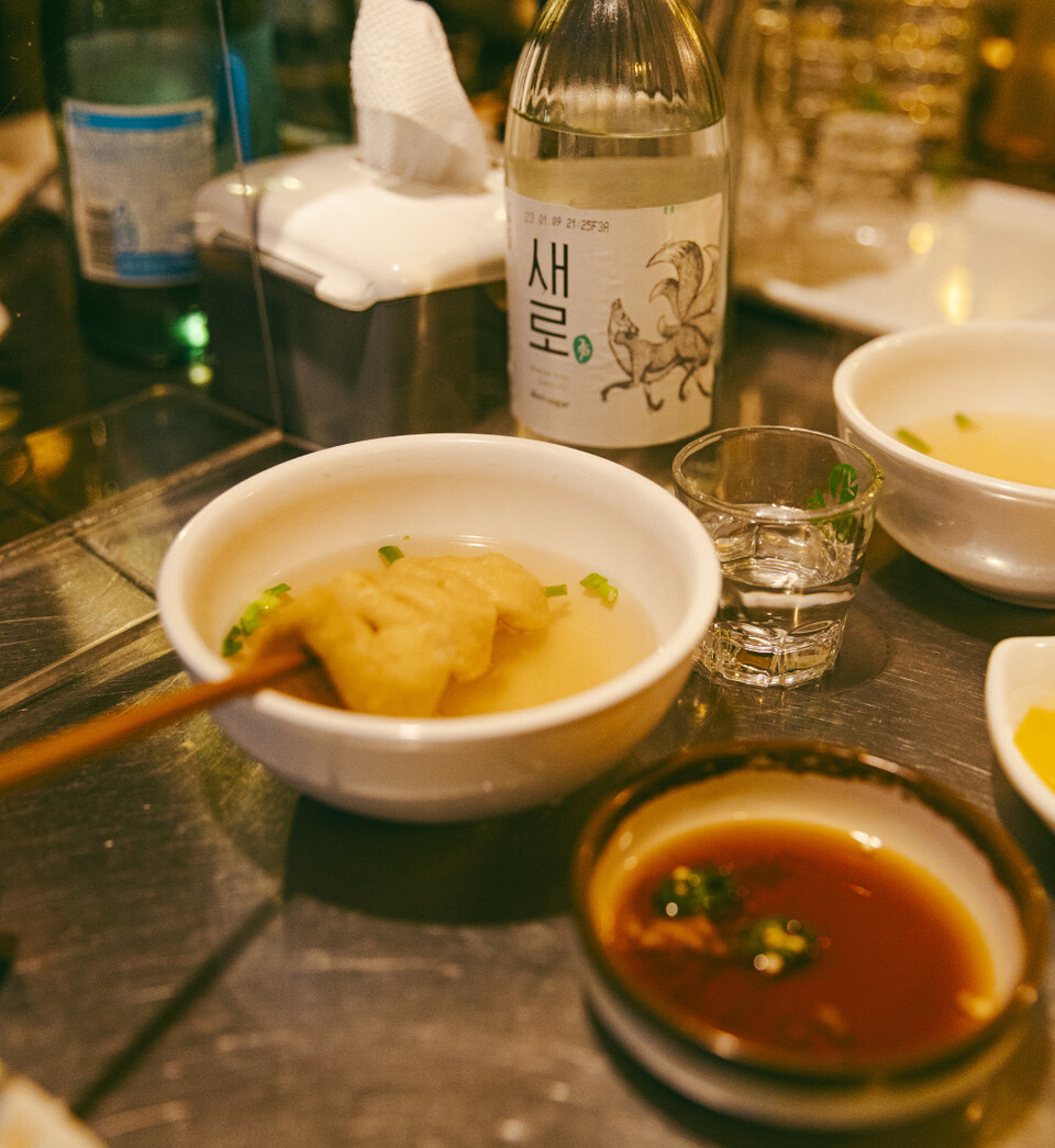 20명 남짓 들어갈 수 있는 공간 한가운데 오뎅바가 있다. 바를 중심으로 사람들이 옹기종기 모여 있다. 따뜻한 오뎅(긴 오뎅, 꼬불 오뎅, 곤약 등)과 도루묵구이 또는 조림, 탱글탱글한 삶은 오징어, 황태양념구이, 시사모구이 등 술과 함께할 든든한 메뉴들이 포진해 있다.