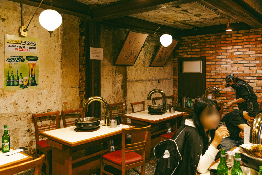 참, 내부도 일반 닭발 가게와는 달리 힙지로에 어울리게 잘 꾸며져 있다. 붉은 벽돌과 그림 장식이 조화를 이뤄 제법 느낌 있다.