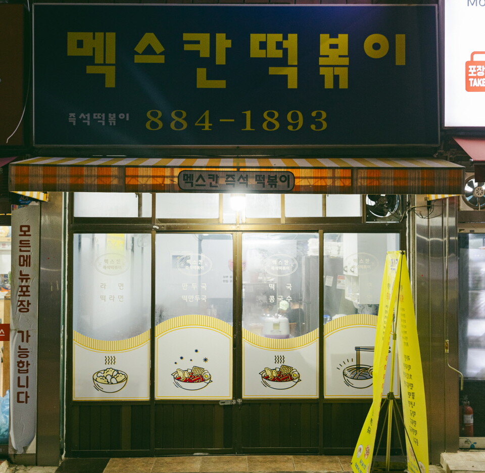 서울대입구역 7번 출구를 벗어나 행운동 먹자골목과 관악중부시장을 지나면 멕스칸떡볶이와 만나게 된다. 외관만 봐도 옛날 느낌이 나는 분식집이다. 달리 말하면 푸근하고, 정이 있는 가게다. 겉만 그런 게 아니라 상냥한 모녀가 반겨주는 속은 더 친근하다.