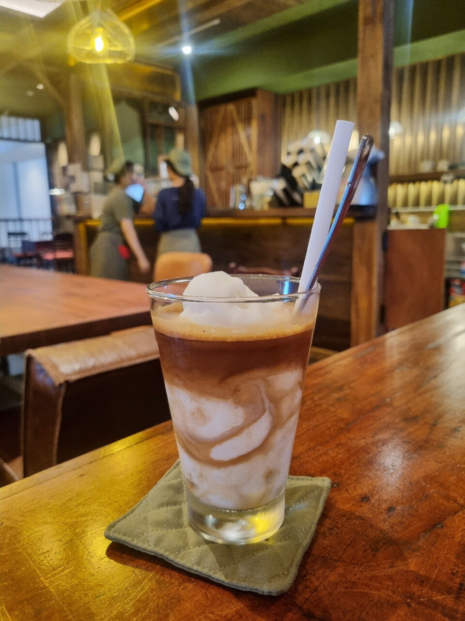 로부스타 원두 생산 1위국답게 베트남은 토종카페가 스타벅스보다 힘이 세다. 베트남 카페 하면 가장 먼저 떠오르는 콩카페는 매장 수가 베트남에서 스타벅스의 두 배가 넘는다. 그중 하나가 호이아나 레지던스 안에 입점해 있다. 콩카페의 콩은 원두가 아니라 베트남 사회주의 공화국의 첫 글자 ‘cong’에서 따온 것으로 ‘공공’ 즉, 공산당의 의미를 담는다. 베트남 군인의 물품을 전시하는 등 사회주의 모티브를 현대적으로 재해석한 인테리어는 늘 호기심을 자극한다. 콩카페의 시그니처 음료인 코코넛 스무디 커피는 진한 베트남 커피에 코코넛 크림을 가득 올려 순식간에 에너지를 끌어올리는 마법을 부렸다. 카지노가 있는 복합 리조트의 특성에 맞게 24시간 운영한다.