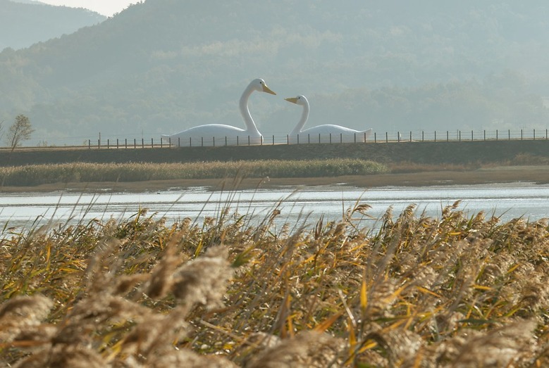 30분쯤 지났을까, 백조 형상의 백조다리 전망대에 올랐다. 소금기를 머금은 바람이 불어온다. 불과 8년 전까지만 해도 하수 종말 처리장이었던 이곳이 66만여 평방미터 규모의 생태공원으로 거듭났다. 생명을 품는 그릇은 결국 자연이란 결론에 도달했다. 한 발짝 다가간 자연은 조용히 위로를 건네고 있었다.