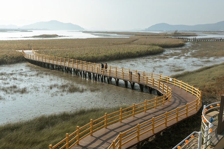 강진만 생태공원에 들어서면 우선 냄새부터가 다르다. 바다의 짠내가 코끝에 전해진다. 바람을 따라가면 금방 갯벌에 도달한다. 몸을 비틀며 춤추는 갈대 아래로 수많은 짱뚱어가 엉금엉금 기어 다닌다. 부끄러움이 많은 편이라 스치는 눈길에도 갯벌 구멍으로 쏙 들어간다. 신발이 더러워지는 일도 없이 갯벌을 누빌 수 있는 건 나무데크(3km)의 역할이 크다. 덕분에 탐진강을 건너는 건 물론이고, 백조다리까지 편안하게 생태계를 관찰할 수 있다.