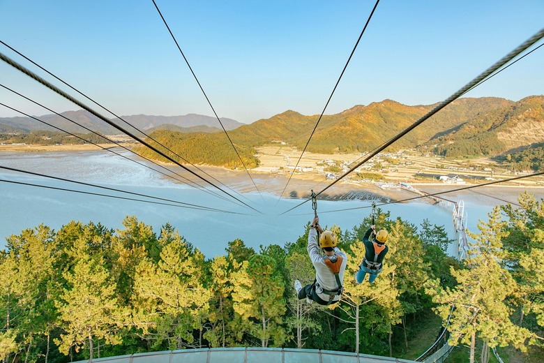 해가 질 무렵, 청자타워 전망대에 올랐다. 짚라인을 타기 위해서다. 와이어에 몸을 묶자 참았던 떨림이 시작됐다. 긴장도 잠시, 어느덧 몸은 하늘을 날고 있었다. 입에서는 탄성이 터져 나왔다. 단 1분 만에 1km 건너편 해안까지 이동한다. 마침 석양으로 물든 갯벌 풍경은 짜릿했다.