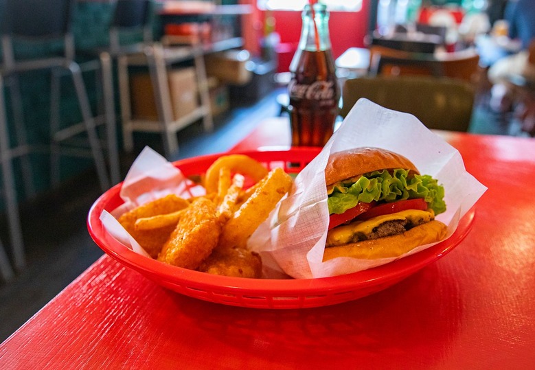 버거, 감자튀김, 콜라가 어우러진 햄버거 한상 |