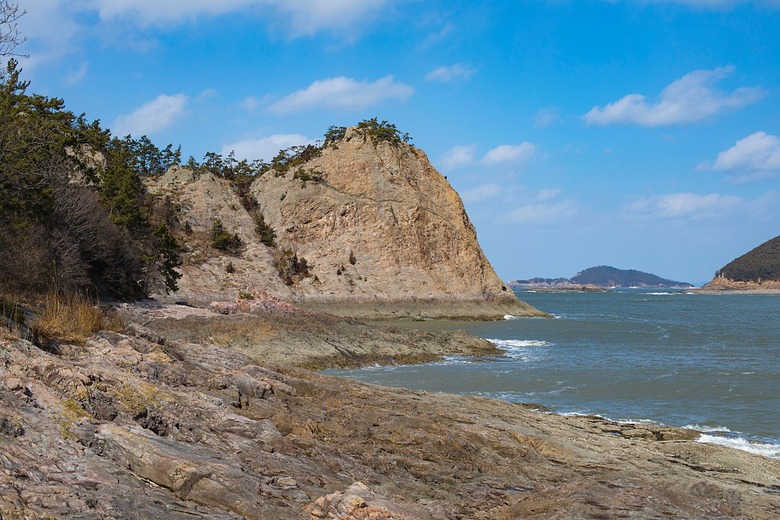 시원한 바다 풍경, 세월을 이겨낸 바위산,