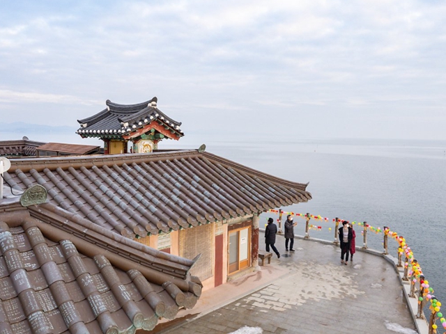 간월암으로 건너가면 무엇보다 탁 트인 바다 전망에 감탄하게 된다. 암자 끝에는 전망대에서는 간월항과 방파제 끝에 세워진 등대의 모습을 한눈에 살펴볼 수 있다. 수령 250년의 사철나무와 기념품샵도 좋은 볼거리다. 만조가 다가오면 탐방을 서둘러 달라는 안내멘트가 나온다.