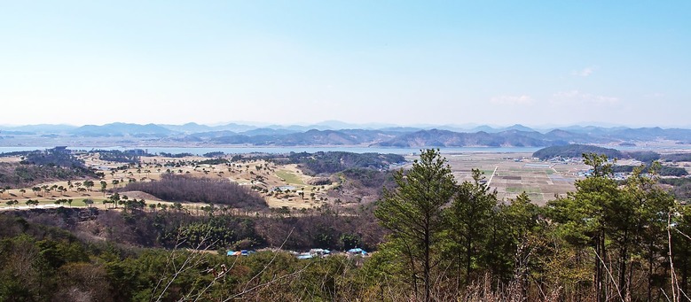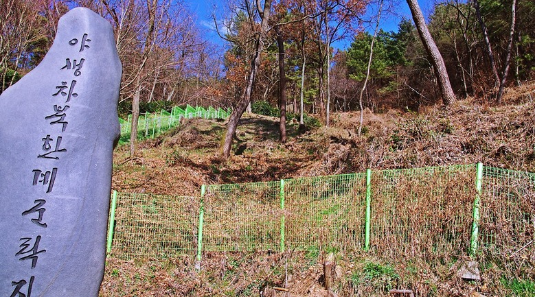 임도 산책로라 걷기 편하다. 시야가 터지면서 금강과 산줄기들이 어울린 풍경이 펼쳐진다. 야생차북한계군락지 비석이 보인다. 야생에서 자라는 차나무의 북쪽 한계선에 있는 차밭이다. 안내판에 북위 36도03분에 위치했다고 적혔다. 차밭을 지나 길을 따르다 보면 웅포면 입점리가 나온다. 입점리에는 입점리 고분 전시관이 있다.