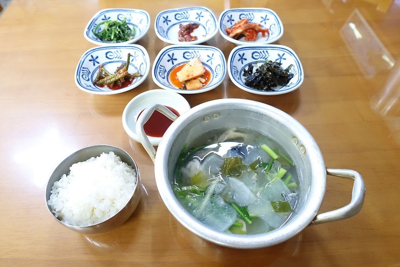 수정식당이 수요미식회에 등장했을 때 방송이 진심이구나 하는 생각을 했다. 사실 수정식당은 관광객이 좋아할만한 비주얼과 메뉴를 갖춘 식당은 아니다. 식당의 시그니처는 복국, 뱃사람과 현지주민들이 술과 피로에 지친 속을 풀기위해 들렀던 곳이다. 수정식당을 두 단어로 표현하면 깔끔, 시원이다. 노부부가 운영하는 식당내부에는 군더더기가 없다. 상차림도 깔끔하다.