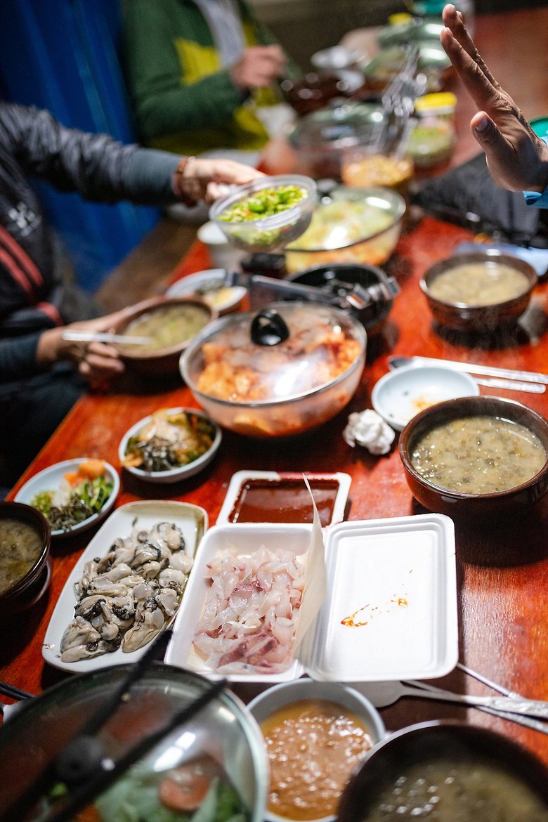 시장에서 굴이나 회를 떠다 테이블에 버젓이 올려놓고 먹어도 뭐라는 사람이 없다. 주인은 오히려 회를 찍어 먹을 막장을 만들어 주기도 한다. 가마솥시락국은 아침 5시면 문을 연다. 대신 오후 2~3시를 넘겨 방문하면 대개는 닫혀있다.