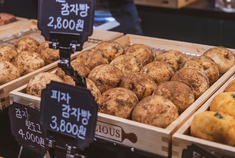 수많은 감자 종류 중 왜 수미감자로 만들어졌을까 싶은데, 한입 먹는 순간 고개를 끄덕이게 된다. 수분이 많아 부드러운 수미감자의 맛이 그대로 베어 있는 감자빵은 쫄깃한 겉면과 부드러운 속살로 먹는 내내 고소함이 느껴진다. 감자빵 외에도 고구마빵, 단호박 빵 등 모양부터 시선을 집중시키는 다양한 디저트가 판매 중이다.