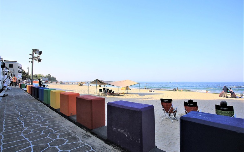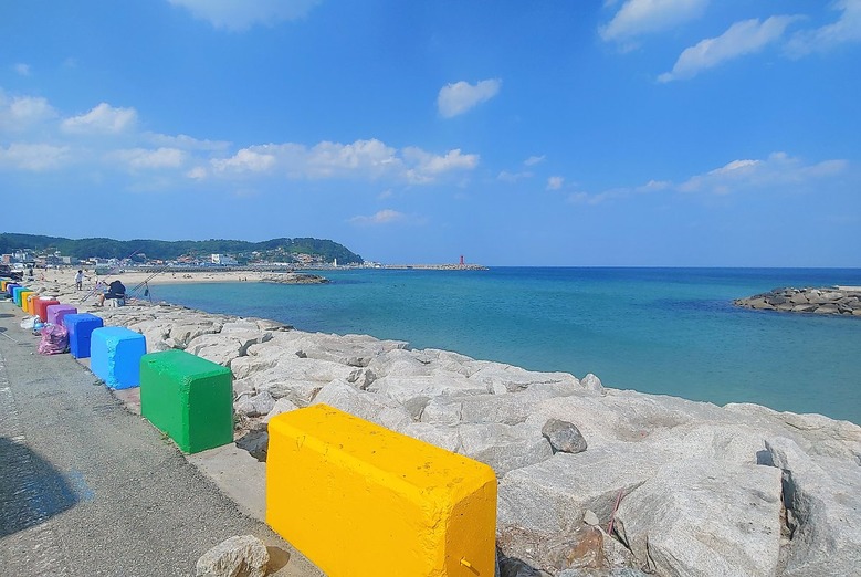 알록달록한 무지개 색상 돌이 늘어선 해안도로가 인스타 인생 사진 명소로 떠오르면서 찾는 사람이 많아졌다. 해변과 주변 풍경이 아름다워 드라마 <사이코지만 괜찮아> 등이 촬영되기도 했다. 일대에 오션뷰 카페, 아야진항구, 아담한 벽화마을 등 소소한 즐길 거리가 많다.