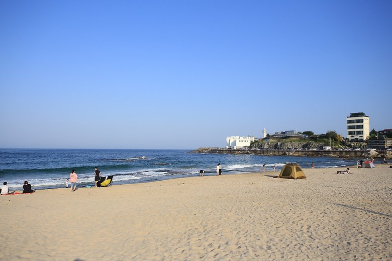 동해안 대표 자연 석호 중 하나인 화진포 옆에 물빛, 모래 빛 고운 해변이 펼쳐진다. 오래 세월에 걸쳐 조개껍질과 바위가 쪼개지고 부서지며 만들어진 모래로 이뤄진 해변은 유난히 곱게 빛난다. 여기에 코발트블루 색감의 바다가 함께하니 유명 휴양지의 해변 풍광이 부럽지 않다.