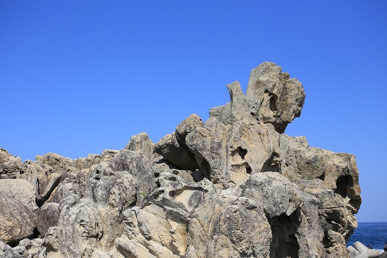 백도해변을 찾았다면 놓치지 말아야 할 볼거리가 바로 능파대다. 해변 남쪽의 문암해변과 문암항 일대에 신비로운 형태의 능파대가 펼쳐진다. 풍화 작용으로 구멍이 파인 바위들이 형이상학적인 자태를 뽐낸다. 장엄한 바다와 어우러지는 능파대가 강렬한 인상을 남긴다.
