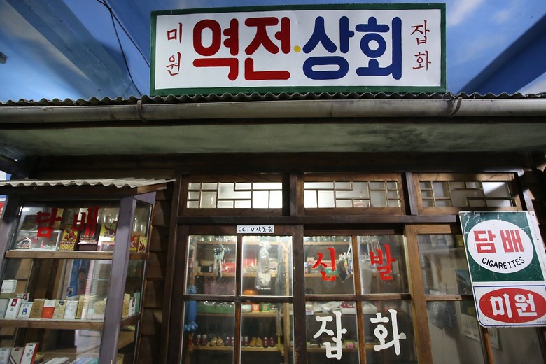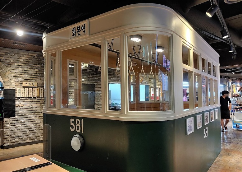 휴게소 내부 중앙에는 전차를 연상케 하는 조형물이 세워져 있고 다른 한쪽에는 ‘장미다방’이라는 글자 아래 다방 의자가 놓여 있다. ‘대신상회’라는 간판을 단 편의점은 마치 예전 동네 구멍가게처럼 추억의 과자도 판매한다.