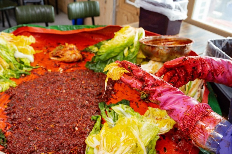 섬 배추는 바닷물에 절이고 잡어액젓을 넣어 버무린다 |