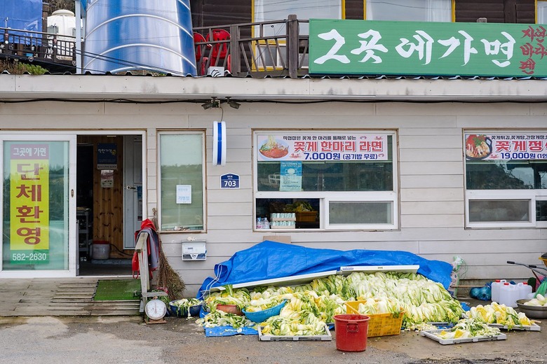 바닷물로 절인 배추에 위도 해역에서 잡은 잡어들로 액젓을 만들어 넣었다는 김치 또한, 맛이 그만이다. 비닐장갑을 낀 손으로 쭉쭉 찢어 먹으니 아삭거리는 식감에 매운맛, 단맛의 조화에 감칠맛이 결정타 한 방을 날렸다. 결국, 라면 그릇을 깨끗하게 비운 후, 비닐봉지를 얻어 남은 김치를 모두 싸 담았다. Clear!