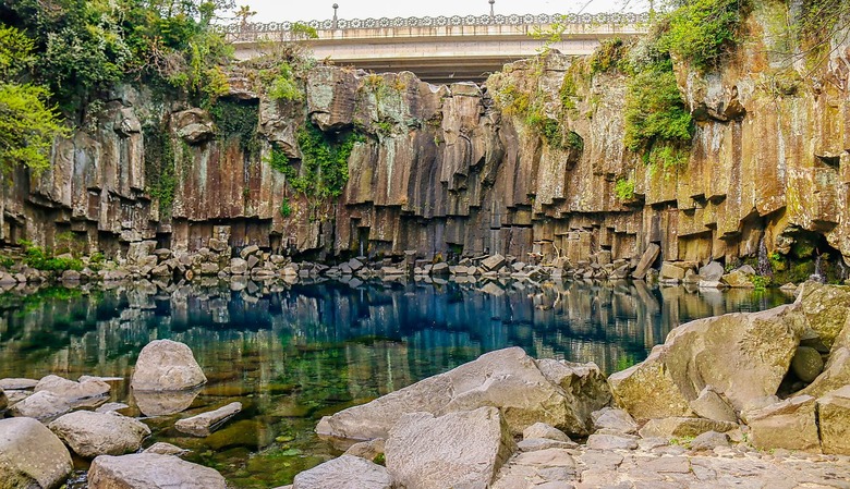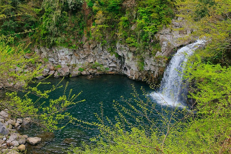 푸른 잉크를 뿌려놓은 것 같은 천제연 제1폭포 |