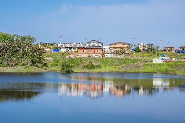 들판을 따라 놓인 좁은 길에서 바라보면 알록달록 예쁘장한 펜션들이 저수지 수면에 반영된 모습을 볼 수 있다. 동화 속 그림을 연상시키는 그 장면 또한 삽시도를 기억할 좋은 소재다.