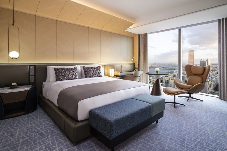 심 한가운데 위치해 있는 만큼 고층 건물들과 한강이 선사하는 파노라마 전망도 일품이다. 규모도 상당하다. 326개의 객실과 스위트룸, 4개의 다이닝 장소와 실내 수영장, 스파, 피트니스 센터를 비롯해 다양한 규모의 이벤트 시설을 갖췄다. 특히 호텔의 시그니처인 루프톱 바 M29에서는 맞춤형 칵테일과 함께 서울의 스카이라인이 빚어내는 전경을 한눈에 담을 수 있다. 연회 공간에는 그랜드 볼룸과 10개의 미팅룸이 포함돼 있어 대규모 행사도 가능하다.