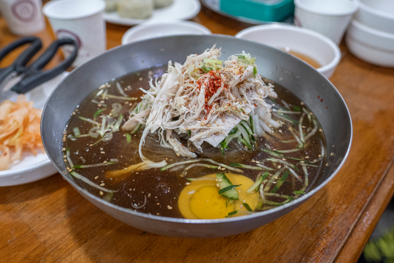 하지만 아쉽게도 이 집은 술은 팔지 않았다. ‘선주후면’을 못하다니. 국물만 후루룩 들이켰다. 서울에서 먹던 냉면과는 맛이 많이 달랐다. 냉면을 먹고 식당을 나서며 박찬일 셰프가 말했다. “3타수 1안타, 그래도 3할은 했네.” 목덜미에 감기는 바람이 후덥지근했다.